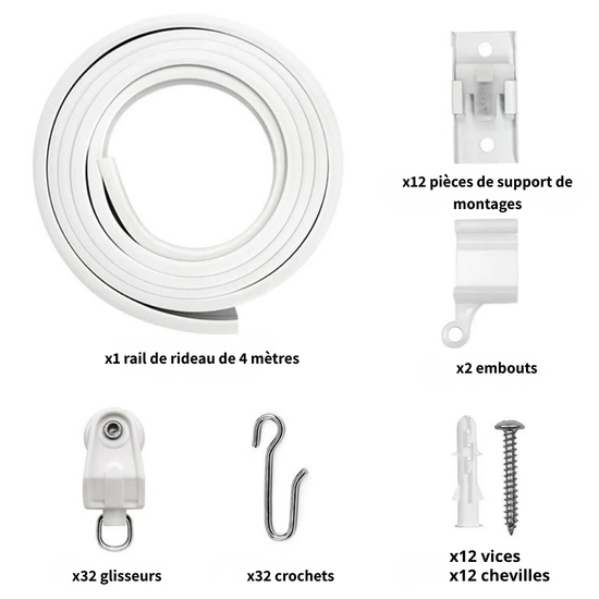 Kit Tringle Rail à Rideaux Flexible Blanc (100 - 600 cm)