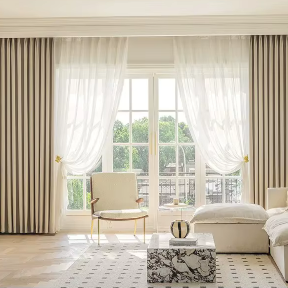 Chez Drapel, nous considérons le rideau comme une pièce maîtresse de votre intérieur. Chaque modèle est choisi avec soin pour offrir l’intimité que vous méritez et filtrer la lumière avec subtilité, tout en sublimant vos espaces par une élégance intemporelle.