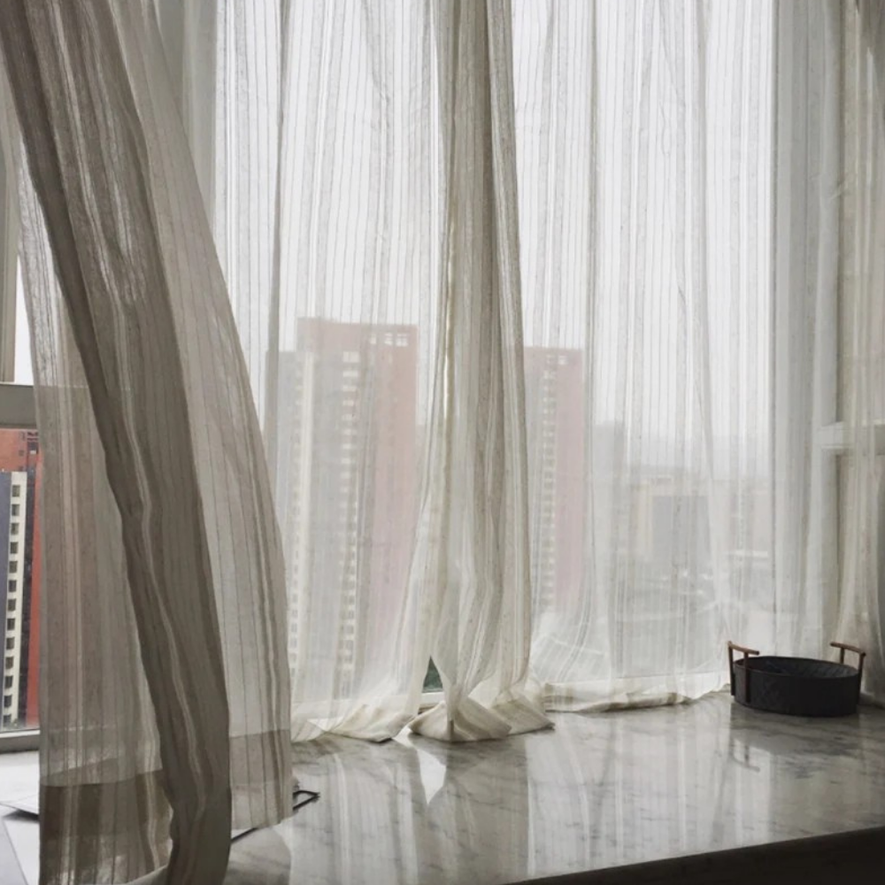 Rideau Transparent à Rayures en Lin et Coton