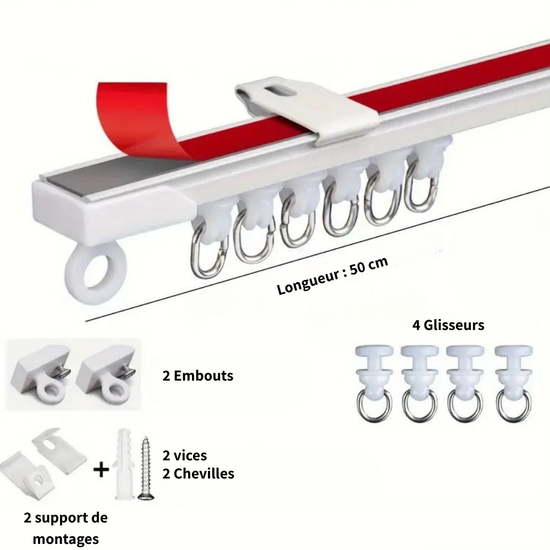 Kit Tringle Rail à Rideaux Flexible Blanc (100 - 600 cm)